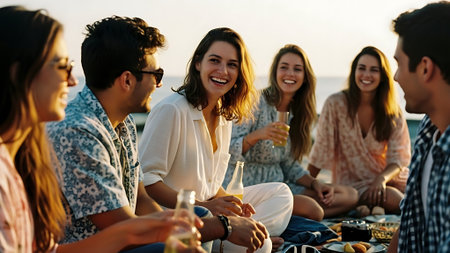 Friend's Beach Party at Sunset, Generative AI