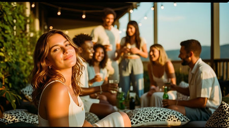 Friends celebrating summer festival. ai generated