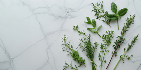 AI Generated. Fresh Herbs on Marble Surface for Culinary Use