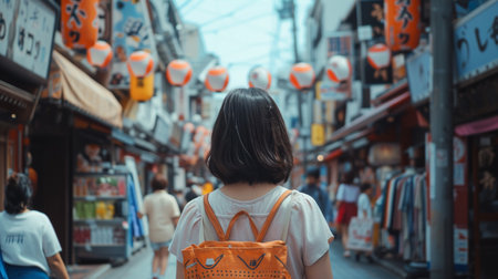 A woman sightseeing in Asakusa, a typical tourist attraction in Japan