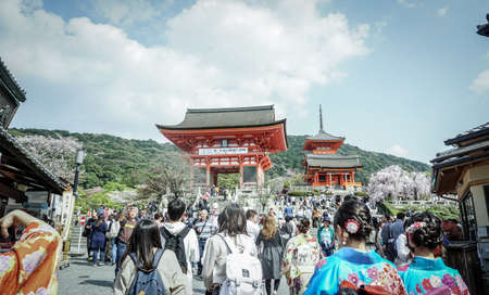 Kyoto, Japan - April 3, 2018: Kiyomizu is one of the most celebrated temples of Japan and popular landmark.