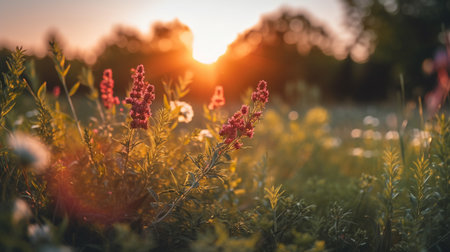 A meadow wildflower grass summer sunrise nature landscape morning sunlight field meadow wildflower grass summer sunrise nature landscape morning sunlight field gentle glow, soft focus flower bloom