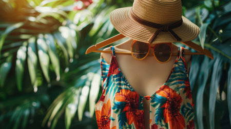 Casual Summer Outfit with Tropical Prints for Vacation and Resort Fashion Advertisements