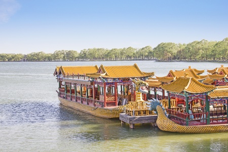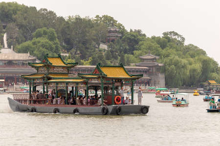 Beijing / China - June 21, 2015: Traditionally styled boat on the Kunming lake in the Summer Palace in Beijing, China