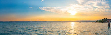 Sunset over Adriatic Sea with golden dramatic sky panorama. Solaris