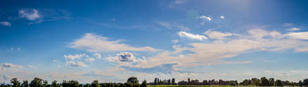 Vibrant color panoramic sky with cloud on a sunny day. Beautiful cirrus cloud. Panorama high resolution photograph.