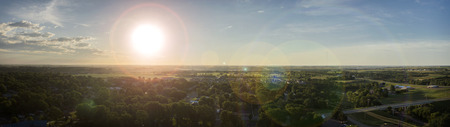 Aerial photograph with lens flare of the sun rising in South Dakota.