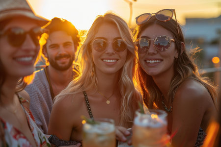Joyful Beach Party Celebration with Friends at Golden Hour