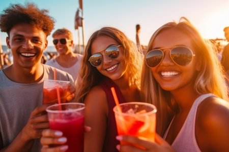 Friends celebrating summer festival. ai generated