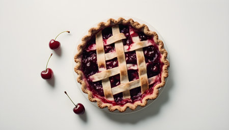 A minimalist representation of a cherry pie, featuring clean lines and simple aesthetics, highlighting the essence of this classic dessert. AI generated.