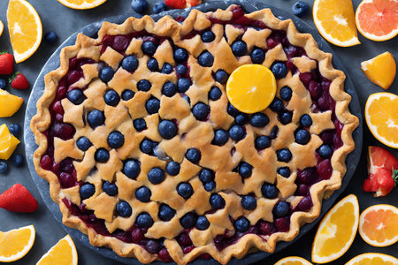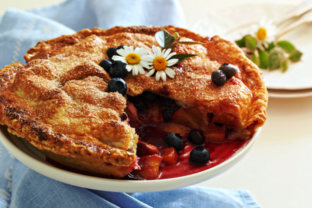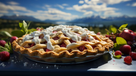 fruit pie baked with pastry crust, bursting with juicy fruit filling, created with generative ai