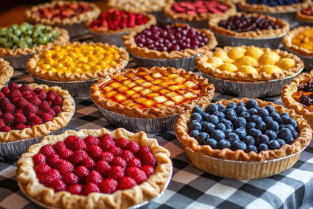 Mouth-watering fruit pies sitting on a checkered tablecloth, showcasing a variety of flavors and preparations