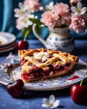 Tasty homemade American cherry pie. Delicious Homemade Cherry Pie with a Flaky Crust