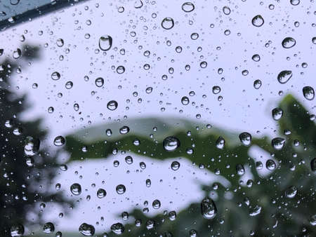 Rain drops on the window in the tree on the background.