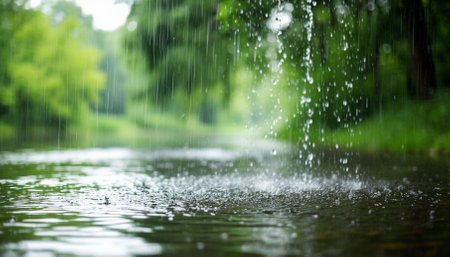 A serene rainy day scene with droplets on a window, capturing the essence of nature's liquid poetry