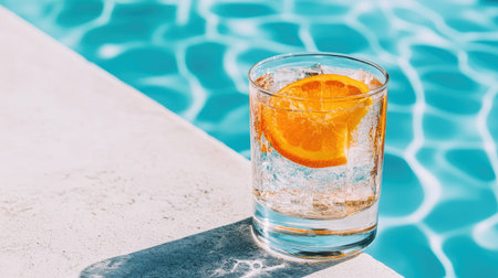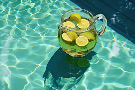 Two glasses of refreshing fruit-infused water by a pool on a sunny summer day.