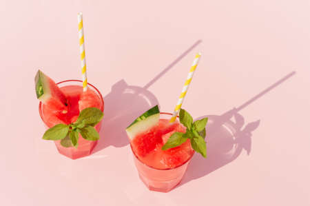 Refreshing drink from watermelon, concept of hot summer and healthy eating