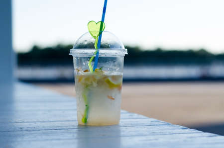 Summer drink with blur beach on background