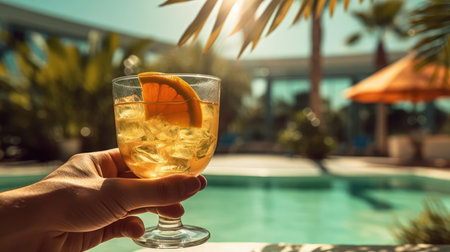 poolside symmetrical cocktails served cold at pool bar. ai generated