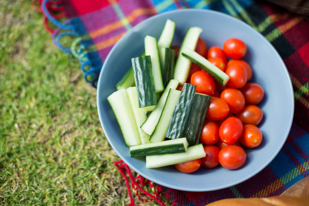 Summer Picnic at sunset on the plaid, food and drink conception lifestyle