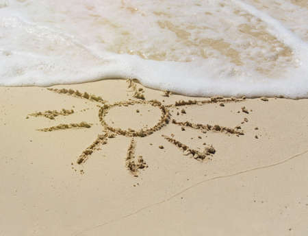 Drawing of sun in the sand on exotic tropical beach