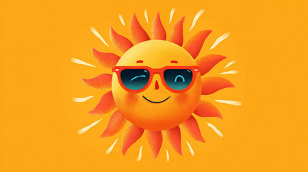 Cheerful sun with bright yellow and orange rays radiating happiness in a playful art style