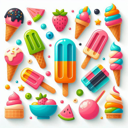 Set of colorful ice creams. Vector illustration in cartoon style.