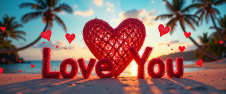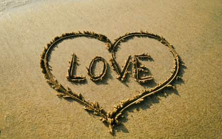 Love word on a sand beach concept for romance or romantic vacation and holiday