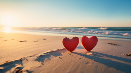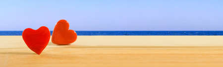 image of two hearts on sea background closeup