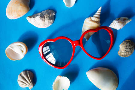 Sunglasses and seashells. vacation concept