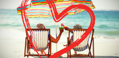 Cute mature couple lying on deckchairs