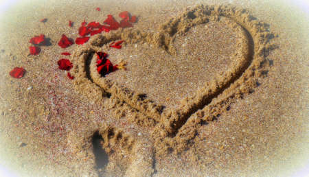 Hand drawn heart on the sand