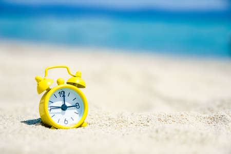 beautiful alarm clock in the sand by the sea on nature background