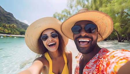 Lovely couple bear on white sand beach with Hat and sun glasses at Hua Hin beach, item and accessories for summer vacation and holiday