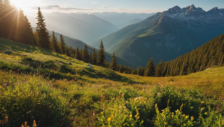 a breathtaking bc summer mountains scenery captured in the style of backlit photography. this stunning 32k uhd associated press photo showcases the awe-inspiring beauty of nature. prepare to be amazed by the incredible landscape that will leave you speechless. ai generated