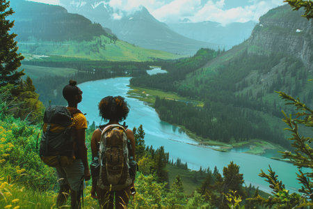 Black travelers hiking in lush green national parks with dramatic landscapes.