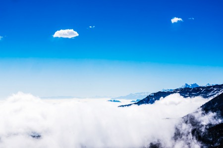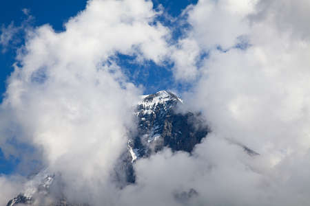 Mountain landscape with clouds and snow in Himalayas, Nepal