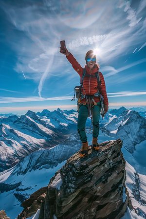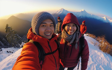 Capturing the Joy: Adventurous Youth Conquering the Peaks with Selfie