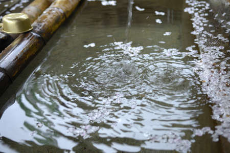 a pavilion for ritual washing of hands and mouth before visiting a Japanese temple or shrine. High quality photo