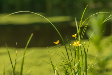 Beautiful yellow Blatouch flower on a green meadow.