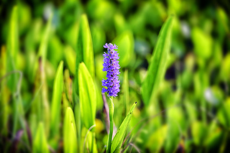 A selective closeup of Eichhornia crassipes flower in a garden