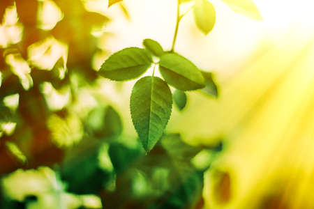 Defocus beautiful view of green leaves. fresh new green leaves glowing in sunlight