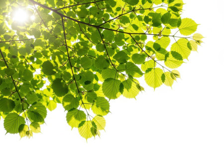 Sun-Kissed Spring Foliage Backlit Fresh Green Beech Leaves on Branch, Vibrant Nature Background
