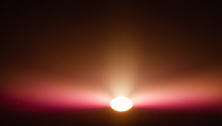 Sunset on black background. Sunlight in the evening. Abstract background.