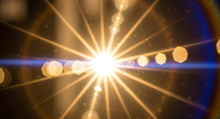 A bright light in the center of a black background with a lens flare effect. --chaos 30 --ar 16:9 --v 6.1 Job ID: 3043e75c-9790-4e47-b801-5d1aa5a7c530