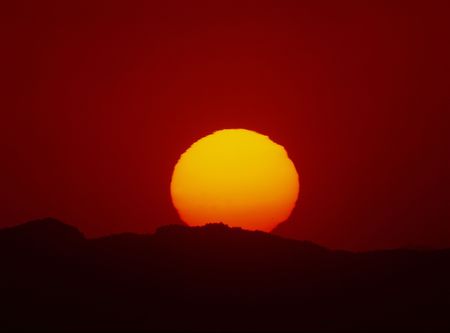 Sunset, the sun is getting bigger and redder