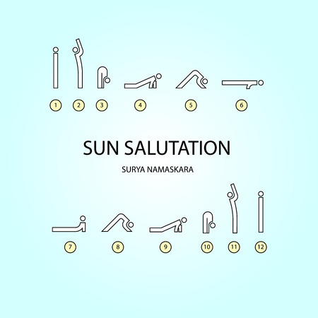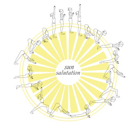 Sun Salutation Complex yoga postures in outline style.Yoga postures outline silhouette.