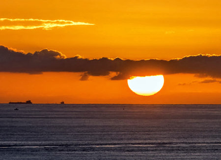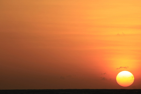 Beautiful sunset sky when there is a thin line of cloud crossing the sun