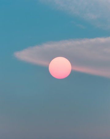AI Generated. A beautiful blue sky with a pink sun in the background