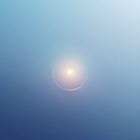 A soft, luminous orb of light with a subtle glow is centered against a smooth gradient of blue sky, appearing diffused and gentle.